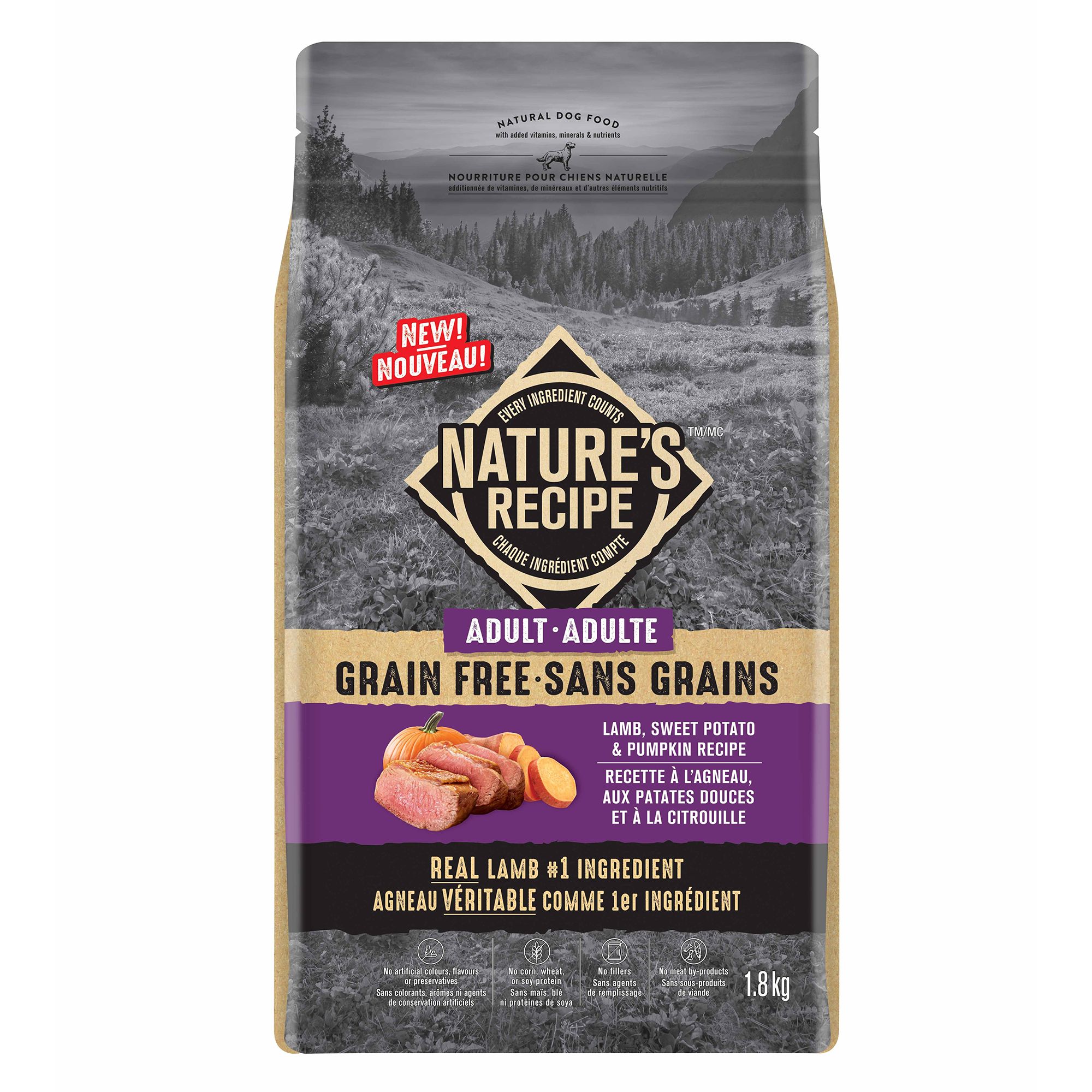 Nature S Recipe Adult Grain Free Lamb Sweet Potato Pumpkin Recipe Dog Food 1 8kg Amazon Ca Pet Supplies